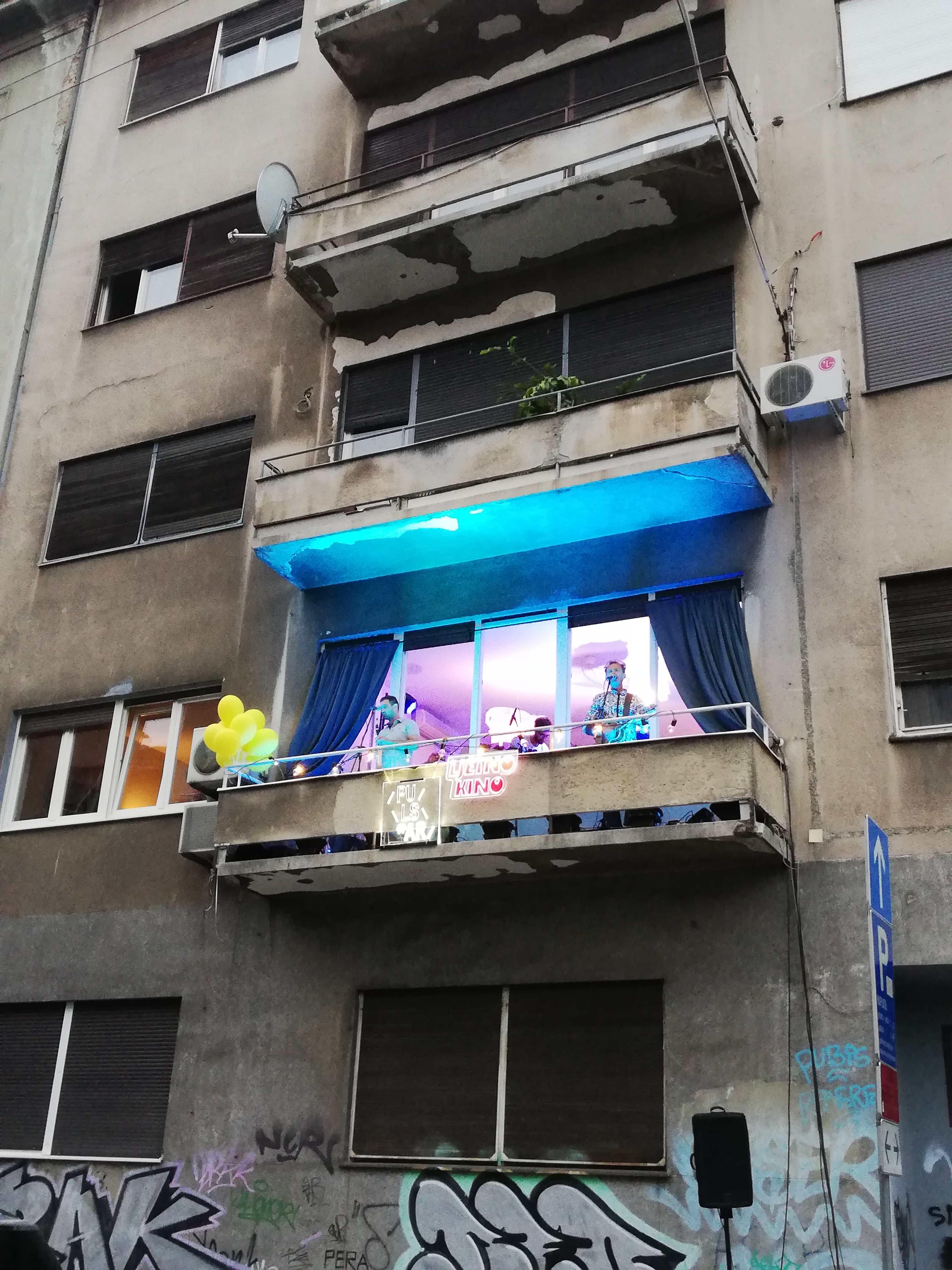 Jedan meni od zanimljivijih događaja ove godine je bio koncert na balkonu Pulsar arhitektonskog biroa, benda Ljetno kino. Osvijetljen raznobojnim svijetlima, se simpatično isticao u sivoj zgradi – klasičnoj boji nažalost našeg grada :/ Uz ljetni, opušteni zvuk s balkona, i interakciju sa publikom je baš dao poseban čar toj večeri. Muvajuć se prolazima, starom vojnom bolnicom, imao si prilike vidjeti mnoge zanimljive koncepte i izložbe, i nezaobilazno rashladiti grlo i dušu, a novačanik riješit viška papirića zvanih novaca kojom zanimljivom kupovinom. Ja ubola ‘House of pain’ ploču, za starog drugara, vinyl kolekcionara. Cijeli taj vikend si mogao lutati i otkrivati Martićevom i susjed ulicama, ili na krovu Vitićevog nebodera uživati u pogledu i koncertu.